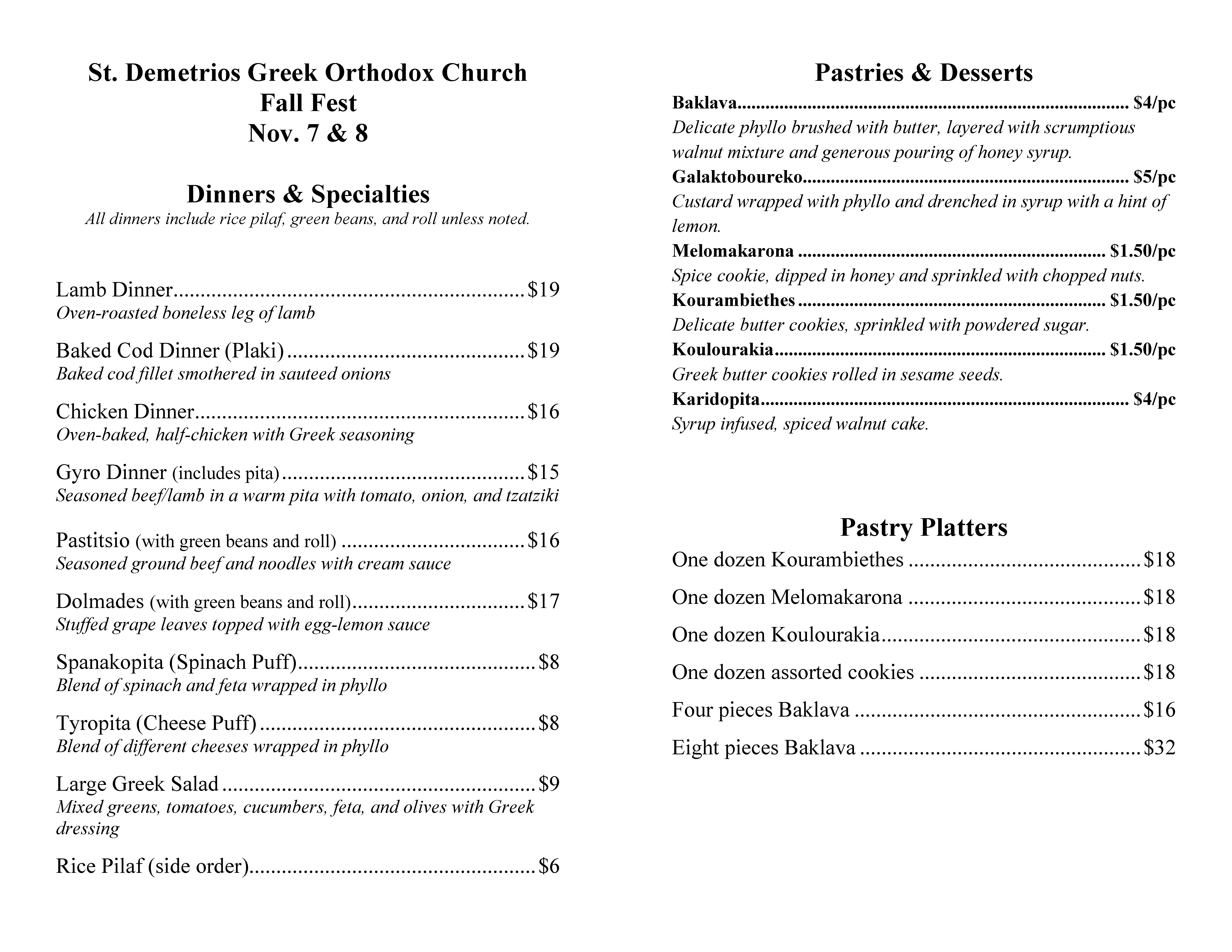 Roast Lamb, Athenian Chicken, Dolmades, Fish, Greek Salad,